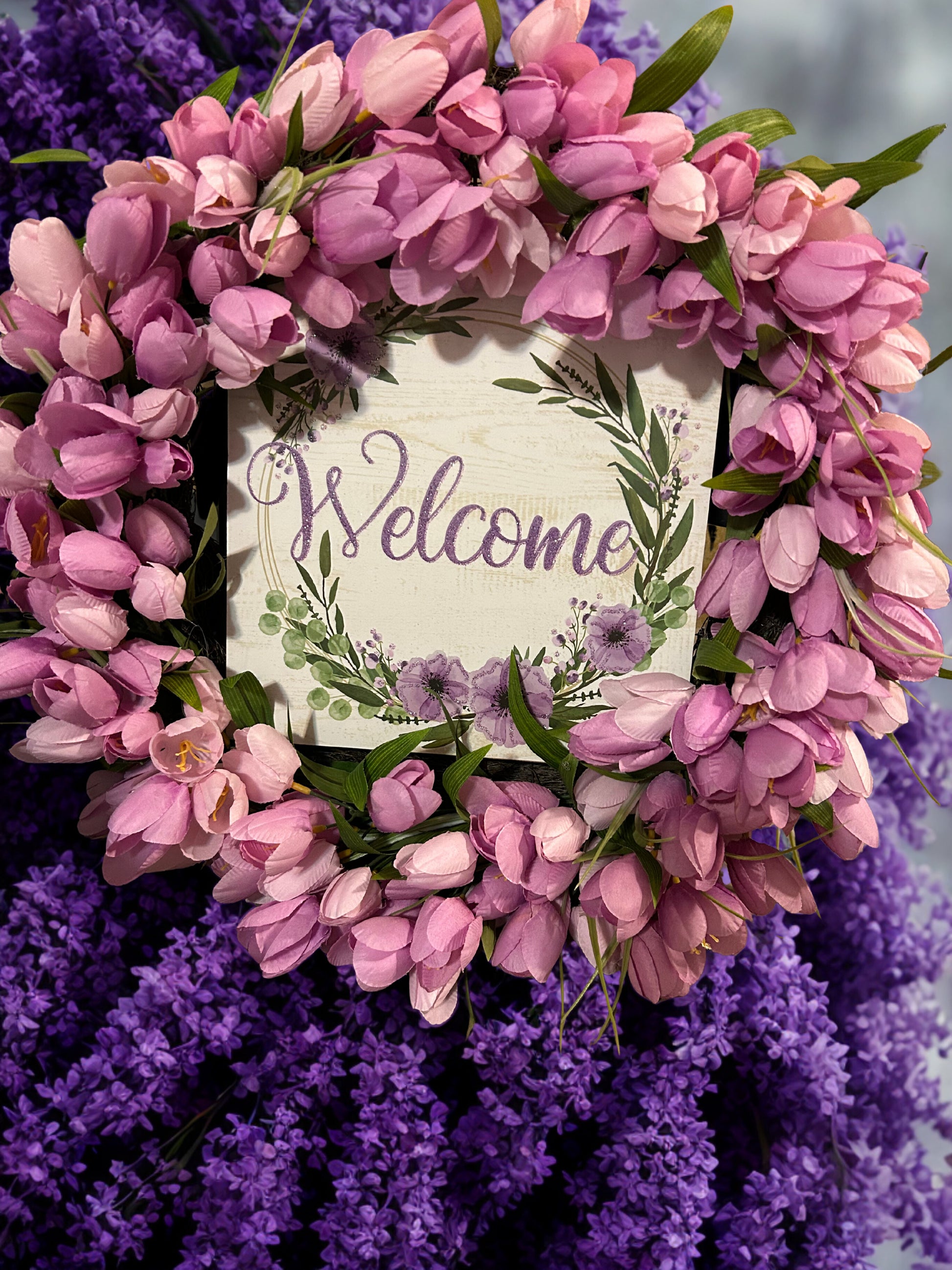 This is a Beautiful Lavender Tulip Flower Wreath